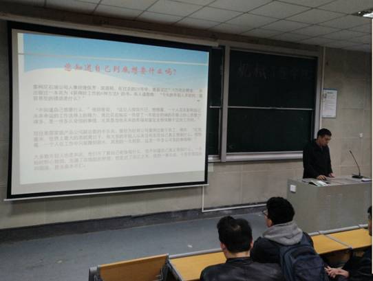 2017年11月26号19:00—20:00机械工程学院党总支书记、高级职业指导师罗丹副书记召集2018届全体毕业生在七教205进行“大学生职业定位”就业指导专题讲座。